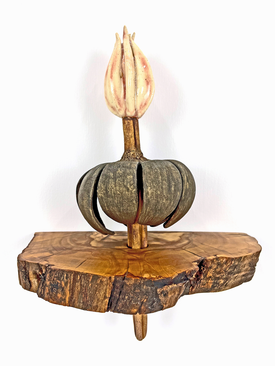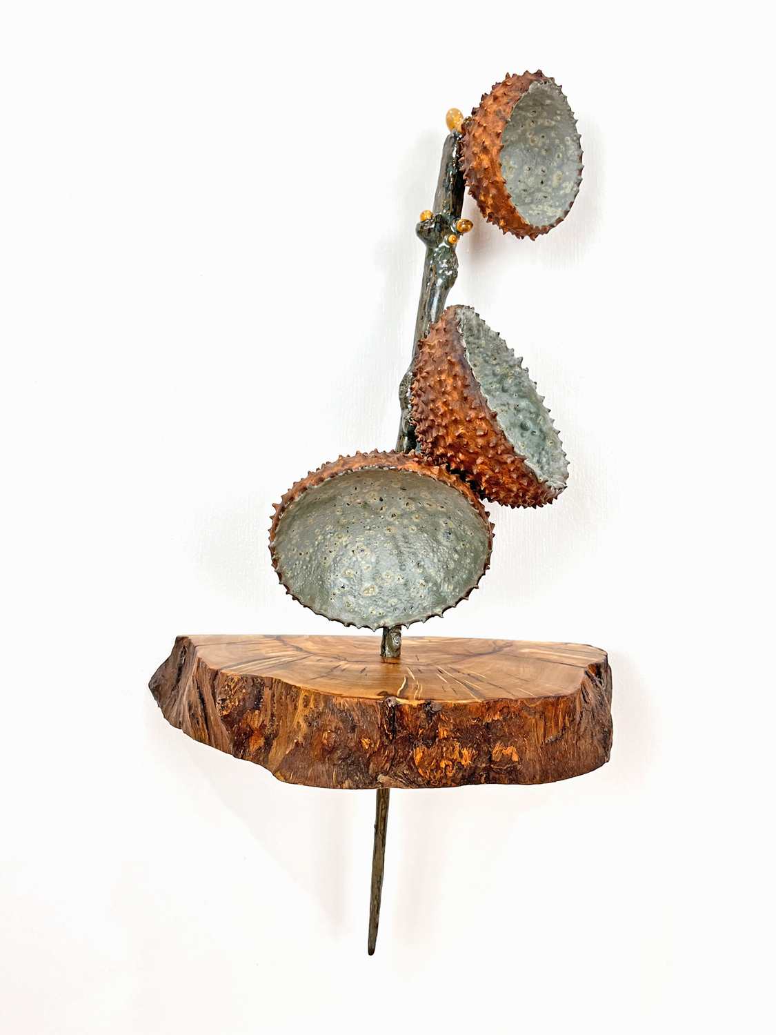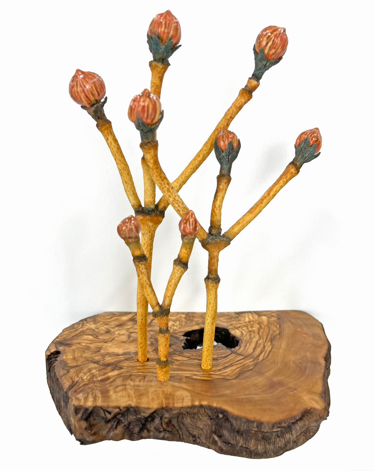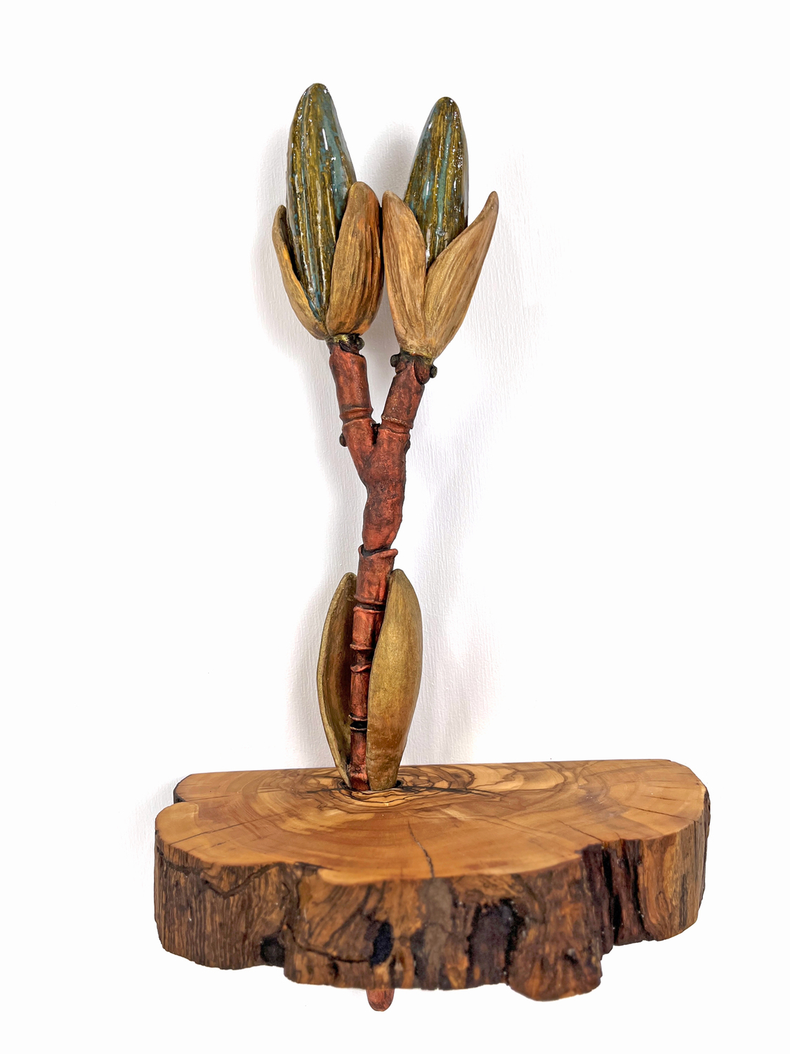 Inspired by the delicafe forms of buds, seeds, and plant fragments, this series reflects the quiet strength of plants pressing toward bloom. Each sculpture is grounded in live edge olive wood - revered in the Judeo-Christian tradition. Fallen fragments in some works evoke the ongoing cycle of life and a story of perseverance in every seed’s journey.